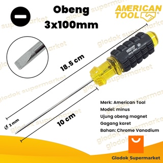 Obeng Minus 4 inch American Tool Diameter 3mm Panjang Besi 10cm Gagang Karet Magnet