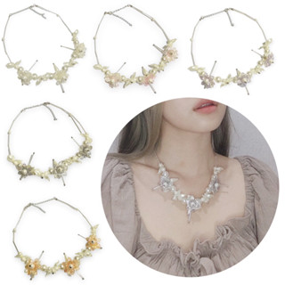 Floretta Flowery Pearl Necklace Kalung Panjang Bunga Mutiara Kalung Hijab Pesta Flower Crystal
