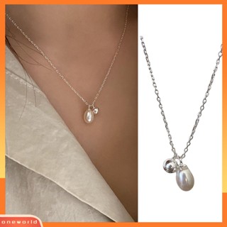 [EONE] Wanita Kalung Panjang Bulat Bola Slim Rantai Elegan Minimalis Glossy Mutiara Imitasi Klavikula Kalung Fashion Perhiasan