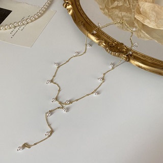 Kalung Rantai Panjang Bentuk Y Aksen Mutiara Gaya Korea Untuk Wanita