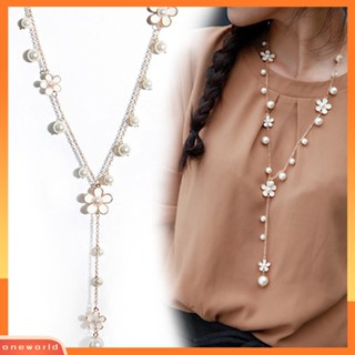 {oneworld} Fashion Wanita Gaya Korea Bunga Mutiara Imitasi Rantai Sweater Kalung Panjang