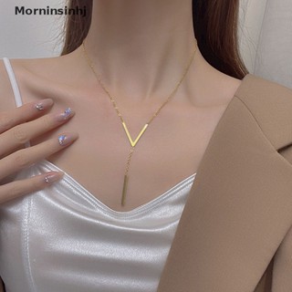 Mornin Stainless Steel V-Shaped Panjang Seksi Klavikula Kalung Wanita Dan Anak Perempuan Anti Karat Warna Emas Rantai Kalung Pesta Perhiasan id