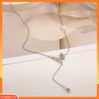 [EONE] Kalung Rumbai High-end Kupu-Kupu Mutiara Imitasi Cahaya Mewah Cubic Zirconia Leher Ornamen Temperamen Shiny Panjang Liontin Klavikula Kalung Perhiasan Aksesori