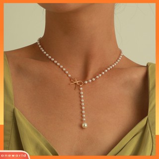 [EONE] Mutiara Imitasi Kalung Lucu Alloy Busur Panjang Rumbai Manik-Manik Liontin Temperamen Dress-Up Warna Emas/Perak Wanita Gaun Sweater Kalung Aksesoris Perhiasan Hadiah