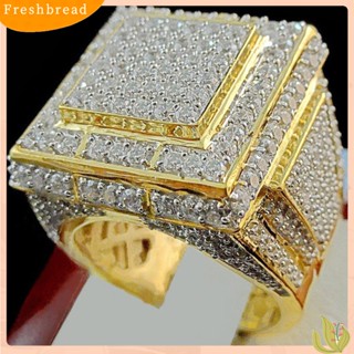 < Freshbread > Pria Fashion Besar Persegi Hip Hop Penuh Micro Berlian Imitasi Pave Rings Perhiasan Pernikahan