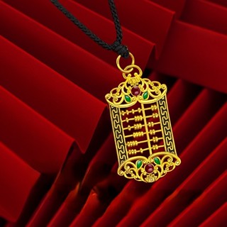 Goldkingdom Perhiasan Fashion Emas Asli Kadar 375Bangkok Aksesoris Ready Stock Pria Dan Wanita Berlapis Emas Retro Membakar Sempoa Biru Liontin Sangat Sederhana Dan Sombong