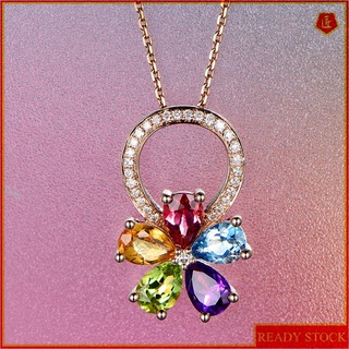[Ready Stock]Fashion Flower Inlaid Colored Gemstone Pendant Necklace