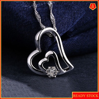 [Ready Stock]Fashion Silver Plated Heart-Shaped Diamond Pendant Clavicle Chain