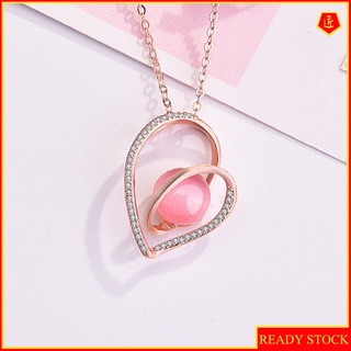 [Ready Stock]Fashion Inlaid Pink Crystal Necklace Sweet Loving Heart Pendant