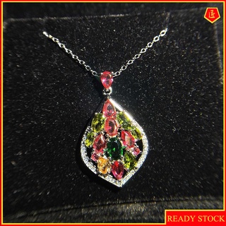 [Ready Stock]Luxury Colorful Tourmaline Pendant Micro-Inlaid Full Diamond Necklace Elegant