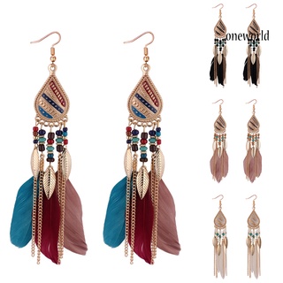 OW@ Vintage Elegant Long Pendant Dangle Hook Feather Earrings Women Jewelry Gift