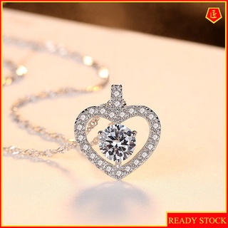[Ready Stock]Micro-Inlaid Diamond Heart-Shaped Pendant Europe and America Creative 925 Silver Necklace