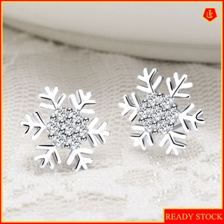 [Ready Stock]925 Silver Snowflake Flowers Diamond Stud Earrings