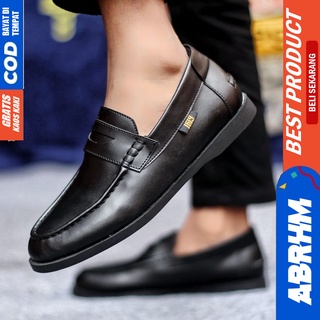 Sepatu Casual Pria Formal Slip On Pantofel Kulit Pu Kerja Kantor Kondangan Kuliah Hitam Fashion Shoes Terbaru Murah Kekinian Original PENNY ABRHM