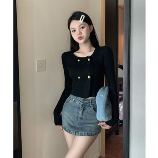 Red Bawah kemeja wanita musim semi dan musim gugur 2023 baru lengan panjang rajutan sweater hot girl V-neck gaya asing slim fit pendek top pasang