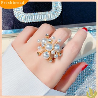 < Freshbread > Bentuk Snowflake Mutiara Imitasi Hias Berlian Imitasi Wanita Terbuka Cincin Jari Perhiasan