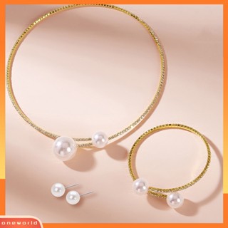 [ONE] 1set Perhiasan Wanita Set Mutiara Imitasi Dipoles Warna Kontras Pembukaan Berlian Imitasi Tubuh Dekorasi Adjustable Ear Stud Klavikula Kalung Perhiasan Set Wanita Perhiasan