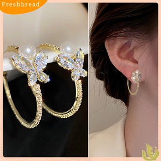 {Ready Stock} 1pasang Anting Pejantan Mutiara Imitasi Berlian Imitasi Bertatahkan Fashion Perhiasan Kupu-Kupu Berbentuk C Anting Tindik Wanita Perhiasan