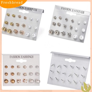 < Freshbread > 9pasang Fashion Wanita Berlian Imitasi Mutiara Imitasi Ear Stud Earrings Set Perhiasan Hadiah