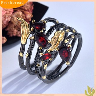 < Freshbread > Wanita Berongga Daun Imitasi Ruby Berlian Imitasi Jari Cincin Hadiah Perhiasan Pesta Pernikahan