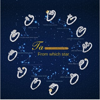 Goldkingdom Fashion Perhiasan Aksesoris Ready Stock Korea Fashion Perhiasan Perak Rasi Bintang Pembukaan Cincin Dua Belas Rasi Bintang Cincin Berlapis Dengan Platinum Dan Perhiasan Perak.