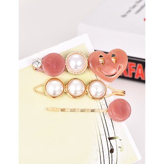 LRC Jepit Rambut Fashion Pink Alloy Pearl Love Hair Clip F44133
