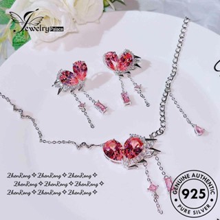 Jewelrypalace Love Asli Simple Wanita Set Berlian Kristal Kalung Pink Perak925 S12