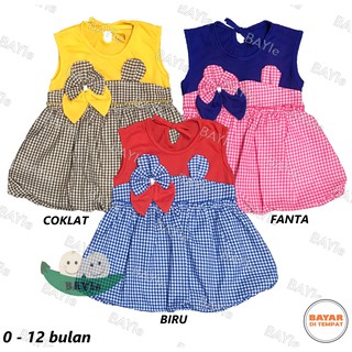 Babysmart - Baju bayi/Anak Perempuan Dress Ballon motif Pita Kombinasi PLANET KIDS usia 0 -12 bulan