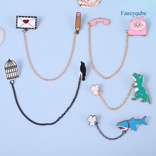 Fancyqube Bros Pin Enamel Bentuk Dinosaurus / Hiu / Burung / Love / Tulisan Aksen Rumbai Gaya Vintage Untuk Pria / Wanita