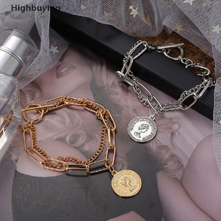 Eropa dan Amerika fashion pin kalung koin multi-lapisan potret kepala ins selebriti Internet street