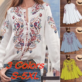 ZANZEA Womens Blouse Casual Loose Shirt Tee Retro Printed Blouse