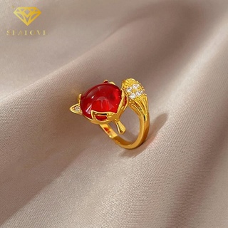 Cincin Titanium Wanita Adjustable Anti karat 18k Emas Rubah Ruby Berlian aksesoris Korea