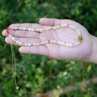 Kalung Amber Baltic Lemon Glossy X Rose Quartz [Resizeable] - 2180