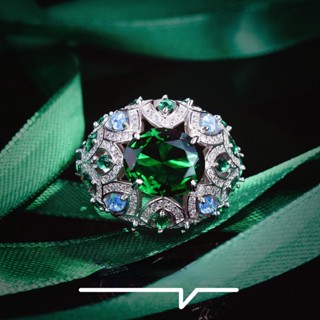 Goldkingdom Aksesoris Perhiasan Fashion Ready Stock Gaoding Jewelry Desainer Kemuliaan Raja Segalanya Mewah Micro Full Berlian Zamrud Dibuka Cincin Harta Karun Warna-Warni