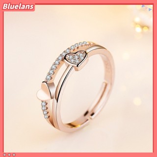 [BLS] Fashion Wanita Berlian Imitasi Hias Hati Ganda Cincin Berakhir Terbuka Perhiasan Hadiah