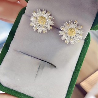Goldkingdom Fashion Perhiasan Aksesoris Ready Stock Mode Baru Segar Dan Elegan Warna Kuning Berlian Daisy Cincin Daisy Anting Kalung Liontin Set