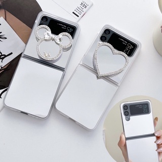 READY! Casing Hard Case Flip 3 / 4 Anti knock Dengan Cermin Untuk Samsung Galaxy Z Motif Hati