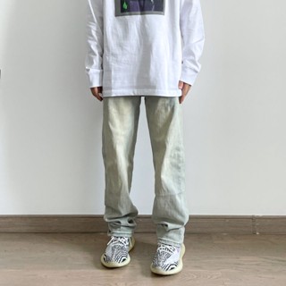 ✚✜Musim gugur Eropa dan Amerika high street tua retro longgar lumpur kuning tabung lurus siswa dicuci jeans kasual celana celana pasang