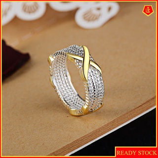 [Ready Stock]Classic Retro Color Separation X Ring Silver Fashion