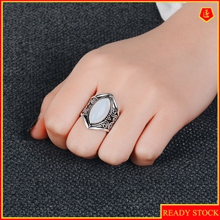 [Ready Stock]Fashion Retro Moonstone Opal Silver Ring Punk Exaggerated