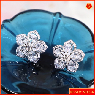 [Ready Stock]925 Silver Elegant Exquisite Cherry Blossom Crystal Stud Earrings
