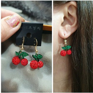 Anting Silver925 mata kilau bahan Silver925 perak platgold Anti karat giwang mata kilau cherry