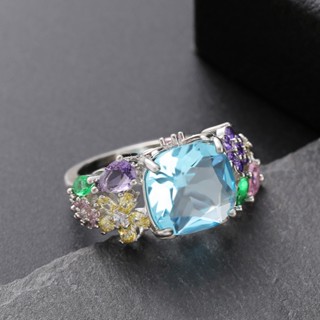 Goldkingdom Fashion Perhiasan Aksesoris Ready Stock Wish Penjualan Panas Baru Set Multi Warna Batu Permata Persegi Putri Cincin Imitasi Berlian Zirkon Engagement Ring Dari Eropa Dan Amerika