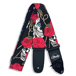 Amumu DN01P Strap Gitar motif Skull Rose Red Denim