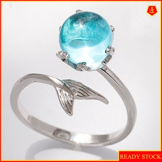 [Ready Stock]Simple Silver Blue Crystal Fishtail Ring