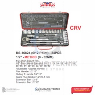 Kunci Sock Set 24 Pcs 1/2" METRIC WIPRO RS-16824 6PT 12PT / Kunci Sok Sock Sock 8-32mm WIPRO RS16824 6PT 12PT - Socket SET Wrench WIPRO RS 16824 6PT 12PT