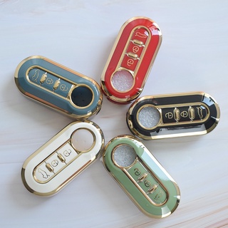 Rumah / Casing Kunci Remote Mobil Lipat 3 Tombol Plastik Warna Gold Untuk Fiat 500