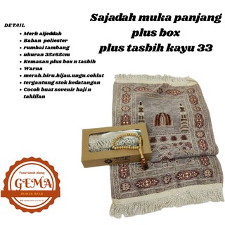 sajadah muka panjang plus box plus tasbih kayu 33 sovenir