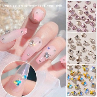 AUGUSTINA Agustina Paku Pesona Kupu-Kupu Kristal Hiasan Kuku Salon Kuku Manikur Aksesoris Menunjuk Bawah Nail Art Berlian Imitasi