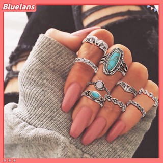 [BLS] 9pcs /Set Wanita Retro Bohemian Imitasi Turquoise Hias Jari Cincin Perhiasan Hadiah